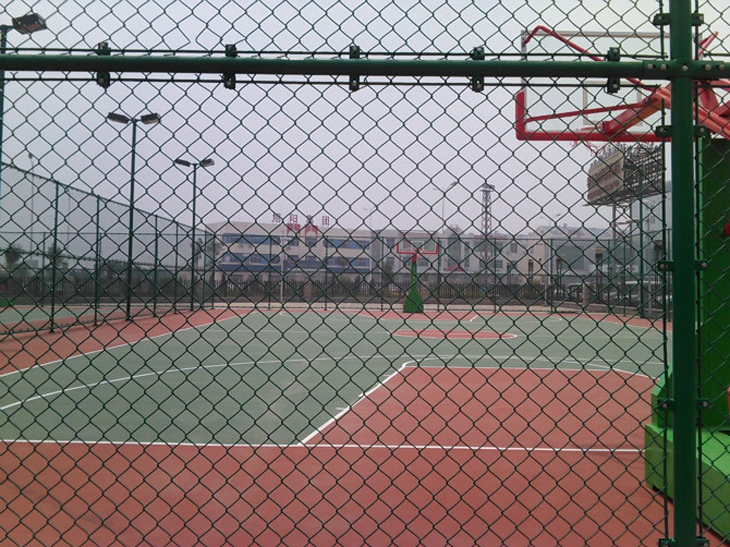 河南南洋420平米篮球场围网按装图片 安平县君隆护栏网厂